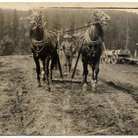 Post card of Charlie Paul Jackson and his team of horses plowing a field near Forest Grove, Oregon in the 1910's.