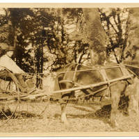 Male student with a horse and cart at the Pacific University Clean-up Day.