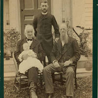 Members of the Bump family in 1889 in Salisbury, Vermont. Pictured are Cyrus Bump (holding baby) born March 6, 1979, Orlo Myron Bump (right) born May 22, 1892, William Fenner Bump (center) born March 16, 1862, and Ermina Louise Bump (baby) born April 8, 1888.
