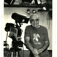 Photograph of Fred Scheller, professor of Speech and Communications at Pacific University, at the KPUR Pacific Radio station.