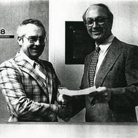 Paper copy of a photograph of two unidentified faculty members at Pacific University.