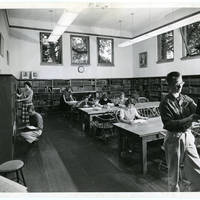 - Pacific University students in Carnegie Library at Pacific University, potentially a publicity photograph.