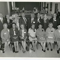 Pacific University, May 10, 1970; Old Guard Reunion; front row, left to right; Mrs. Mildred Alexander '19; Mrs. Clarence Elliot '20; Mrs. Avs S. Garratt '15; Mrs. Helen Bruner Slavens '19; Mrs. Max M. Reeher '17; Miss Elcy N. Wlaker '16; Mrs. H. B. Ferrin '15; Back row left to right: Mrs. E. D. Clapp '13; Mr. H. B. Ferrin '13; Mrs. Arthur Ireland '17; Mr. Arthur Ireland '17; Mr. B. Harry Reeher '11; Mr. A. J. Prideaux '06; Mrs. Jonh W. Peters '07; Mr. John Peters '07.