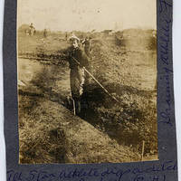 [front] Ethel Stearns Smith, Esther Silverman [likely married names], 1910- [back] All star athelete digs a ditch [undecipherabl] Work Day on Campus. (CH) Harry P. Humphreys, draining athletic field