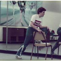 A Pacific University student stretches for a dance class.