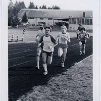 A group of young men running in a track and field race. One of them, unspecified, is identified as Dean Kling.
