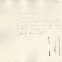 Back: Buxton, Oregon 1906. 1) Presb. Church. 2) House of Charley Peterson, Post Master. 3) John Henry's 'Rinck' Stair. 4) Bob Simpson's Saloon. 5) Elk Horn Hotel