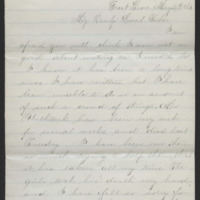 Forest Grove, May 24th 1883<br/><br/>My Dearly Loved Father,<br/><br/>I am afraid you will think I am not as good about writing as I used to be. I know it has been a long time since I have written, but I have been unable to do so on account of such a crowd of things.<br/><br/>Mr. Unthank [i.e. Joseph Unthank, 1815-1883] has been very sick for several weeks, and died last Tuesday. I have been over there so much trying to help them that it has taken all my time. The girls took his death very hard, and I have felt so sorry for them, that I have stayed there all the time I could spare away from home. <br/><br/>I am sorry, so sorry, that you have had so much trouble about the land. I hope you can still hold it. You must not worry about it and make yourself sick. We are all well here and getting on nicely. It is not long now before [Corn?]- I hope you can be here by that time.<br/><br/>Did I tell you in my last letter that I had ceased all part in the I.T. [Indian Training] School. It is even so. I could not make any very satisfactory arrangements so I concluded to cut short the agony and resign. I think it is much better that I did so. They wanted me to put in my time in the sewing room and it took eight hours per day. Sat. included. I found it was altogether too hard and wearing for me, so I thought for a change that I would take music lessons. I am taking of Sarah Coplen. I do enjoy it so much. I thought I might get kind of a start in music this summer, and see how I got on with it, and then next winter, if I found it possible, I might pursue it further, if not, I could get a school and teach somewhere. I can learn considerable just during the summer about music. <br/><br/>I find it very delightful to have a little time to myself again, and not be in a perpetual hurry all the time. I have been trying to get things straightened a little about the house also. Rev. Mr. Marsh has depar[t]ed and Mr. Bosworth has been preaching now several times. He is an exceedingly fine man. The church has been conferring with a minister by the name of Miller, a friend of Mr. Bosworth's whom they think may possibly come. He is said to be a very fine man. It is certainly to be hoped that they may find some one before long who will be what is needed in this place.<br/><br/>Every one is interested in knowing when you will return. None however more so than your little daughter. I send bushels of love.<br/><br/>Your own little Mary.