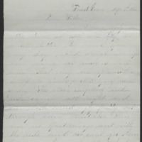 Forest Grove, Apr 9th 1882<br/><br/>Dear Father,<br/><br/>I have only a little time so will writer simply a small letter. We miss you every day, and several mornings have risen at such a late hour that only one explanation could be given -- that you were gone. The stair carpeting and rods came all right and are both exceedingly pretty, but through some mistake there were no fastenings sent with the rods and we can't get them here so have simply tacked sown the carpet and will wait about the rest. <br/><br/>The Institute was quite interesting most of it, though not as good as it was when it was held here before. Emma & I had two days of rest from school [i.e. teaching at the Indian Training School] which were quite refreshing. Thursday and Friday we dismissed school. Capt. Wilkinson went to Puyallup and brought back Julia Taylor with five other girls, and Joseph Meeker's little twin brother, Fred. He looks so much like Joseph that I presume I will find it very hard to tell them apart. <br/><br/>We have had lovely weather, a little rain a day or two ago, but clear most all the time. <br/><br/>Mr. Hoxter presented his bill a few days ago, it was quite encouraging in that it was in all only $36.34. I think [we] have been very economical. We have had a letter or two from H. [probably Horace, her brother]. He is prosperous. I wish I could see you, you must take very good care of yourself.<br/><br/>You own loving little Mary