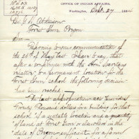 Letter regarding relocating the Indian Training School away from Forest Grove