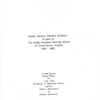 'Forest Grove's Adopted Children: A look at the Indian Training School at Forest Grove, Oregon': Pacific University student thesis