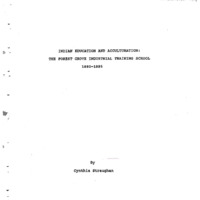 A senior thesis paper written by Pacific University student Cynthia Straughan on the history of the Forest Grove Indian Training School. She discusses the creation of the first off-reservation Indian boarding school, the Carlisle School, and its relationship to the founding of the school in Forest Grove. She draws on primary sources from the Pacific University Archives to describe the aims and activities of the school.
