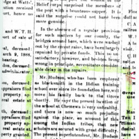Short article from a local newspaper, the 'Washington Independent,' about Mr. Hudson, who was the blacksmithing teacher at the Forest Grove Indian Training School and Chemawa in the 1880s. Hudson states that 'the present location of the school at Chemawa is very unhealthy, and there is now so much prejudice against the place on account of this among the Indian trives, that new scholars are secured with great difficulty.'