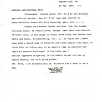 A from a newspaper article describing the display of twelve children from the Forest Grove Indian Training School at an agricultural fair in Newberg in 1883. The article was transcribed from the Yamhill Reporter; it originally appeared in the Willamette Farmer, according to notes on the page.