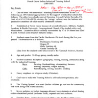 Lecture notes about the Forest Grove Indian Training School by Pacific University's former curator, Richard Read. The notes include key points in the school's history, demographics of the school by tribe and gender, as well as a list of people who were key contributors to its founding.