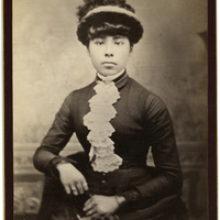 Portrait of Anna (or 'Annie') Pierre, a member of the Tututni tribe who came from the Siletz Agency. She attended the Indian Training School in Forest Grove and its successor, Chemawa School, from September 1884 through April 1889, according to the school's roster. This photograph was printed in November 1886, probably soon after she moved from Forest Grove to the school's new site in Salem. For another undated portait identified as Anna Pierre, see PUApic_008379. For an image of a relative who attended with her, Sarah Pierre, see PUApic_008377.