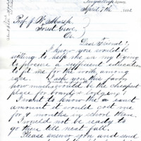 United States Indian Service, Puyallup Agency, April 7th, 1882.<br/>Prof. J. W. Marsh, Forest Grove, Or.<br/><br/>Dear Friend:<br/><br/>I know you would be willing to help me in my trying to procure a sufficient education to fit me for the work among [my] race. I ask you this favor, how much a week or month would be the cheapest place for board & lodging? I want to know the exact amount it would cost me for 9 months in school there. I would not be ready to go there till next fall. <br/><br/>Please answer soon and send me a copy of the School's catalogue and oblige. We are all well at present.<br/><br/>Please remember me kindly to Profs. Ferrin, and Lyman. <br/><br/>Yours in haste,<br/>P.C. Stanup<br/><br/>[Note in Marsh's writing:] Ans[wered]. About $200. Will probably give him his tuition.