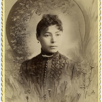 Portrait of Sarah Pierre, a member of the Tututni tribe who came from the Siletz Agency. She attended the Indian Training School in Forest Grove and its successor, Chemawa School, from September 1884 through April 1889, according to the school's roster. For portraits of a relative who attended with her, Anna Pierre, see PUApic_008309 and PUApic_008379