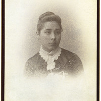 Portrait of Anna (or 'Annie') Pierre, a member of the Tututni tribe who came from the Siletz Agency. She attended the Indian Training School in Forest Grove and its successor, Chemawa School, from September 1884 through April 1889, according to the school's roster. For another portrait identified as Anna Pierre, see PUApic_008309. For an image of a relative who attended with her, Sarah Pierre, see PUApic_008377