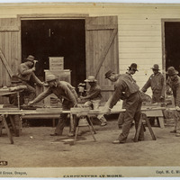 Davidson, Photo. No. 42. Indian Training School, Forest Grove, Oregon, Carpenters at Work. Capt. M. C. Wilkinson, U. S. A., in Charge.