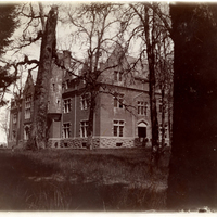 A sepia photograph of Marsh Hall. Marsh Hall was built in 1895 and named after Pacific University president, Sidney Harper Marsh. Marsh Hall housed the university's chapel, recitation rooms, classrooms, administration offices and rooms for the literary societies and the Christian Associations. This photograph is part of the Nettie Shipley Haines photograph album.