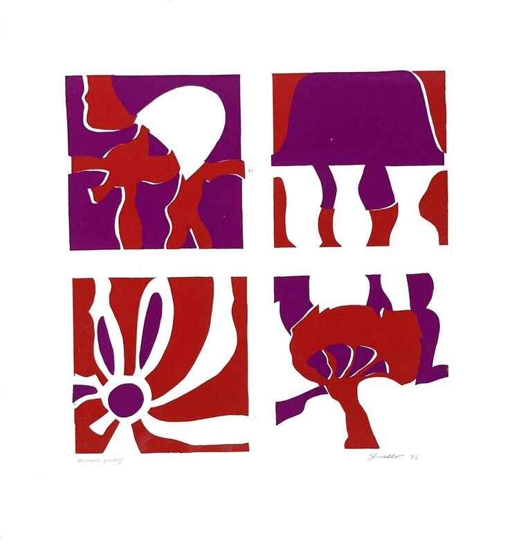 This is a color wood block print of a bouquet of flowers. The print was gifted to Kathrin Cawein.