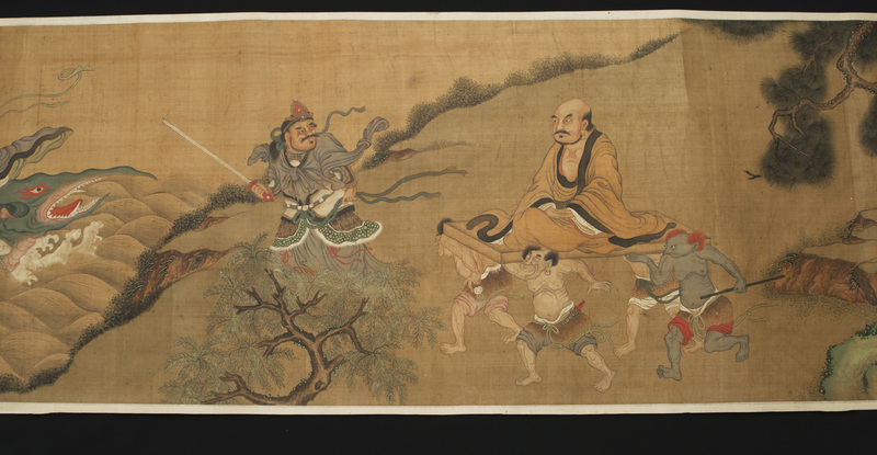 The "Nine Luohans" Scroll (Qing Dynasty, circa 1700 CE) depicts scenes from the lives of nine of the luohans, or early disciples of Buddha.