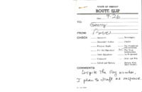 Attached to the telegram is a routing slip, showing that Oliver forwarded the telegram to Governor Atiyeh's chief of staff, Gerry Thompson. This item was a part of the papers of Bob Oliver.