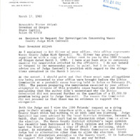 Letter to Governor Atiyeh refuting allegations of bribery against Judge Richard Cantrell and the Rajneesh
