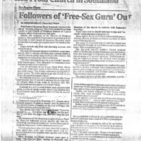 'Followers of Free-Sex Guru Out' news article on the Rajneesh presence in America