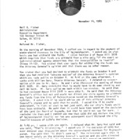 Letter from Swami Krishna Deva, the mayor of Rajneeshpuram, to Neal R. Fisher, of the Oregon Governor's Accounting Division. The letter summarizes a series of interactions had between the two about the withheld state funds. Bill 3028 states that agencies cannot withhold funds based solely upon the opinion of an Attorney General, rather, only if the Land Use Board of Appeals had declared the city invalid. As the city was not labeled invalid, the City of Rajneeshpuram demands that the state-shared revenues be released and the mistake rectified. This item was a part of the papers of Bob Oliver, Governor Atiyeh's legal counsel.