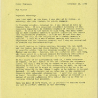 A memo from Bob Oliver, legal counsel to Governor Atiyeh, to Gerry Thompson, the Governory's Chief of Staff. The memo relays information regarding a conversation with Krishna Deva, the mayor of Rajneeshpuram, who had expressed concern over state funds being withheld. The withholding was due to the state's legal objections over the community's attempt to incorporate itself as a city. Krishna Deva also advises that the Governor's office should not communicate with Swami Prartho Subhan as he is not the attorney for Rajneeshpuram; the city's attorney is Ma Prem Sangett. Included is a memo from Bob Oliver to attorney Ma Prem Sangett advising him of the conversations had with Mayor Krishna Deva. This item was a part of the papers of Bob Oliver.