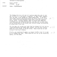 Interoffice memo from Fred D. Miller, director to Bob Oliver, assistant to the Governor regarding rumored gates on Wasco County Road. The memo acts as a response to inquires made by a local anti-Rajneesh group about gates, city funds from the Highway Division and traffic signs. This item was a part of the papers of Bob Oliver, Governor Atiyeh's legal counsel.