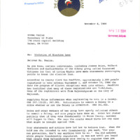 Letter from Ma Prem Sangeet, attorney for the city of Rajneeshpuram to Oregon's Secretary of State, Norma Paulus. Sangeet writes regarding the Rajneesh Foundation's belief that unfair voting practices were being implemented during a voter registration period. The Rajneeshpuram community felt that fraudulent registration was encouraged and requests that the Secretary of State take steps to enforce the law. This item was a part of the papers of Bob Oliver, Governor Atiyeh's legal counsel.