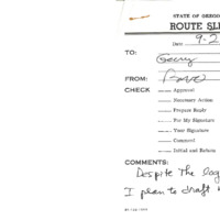 Attached to the telegram is a routing slip, showing that Oliver forwarded the telegram to Governor Atiyeh's chief of staff, Gerry Thompson. This item was a part of the papers of Bob Oliver.