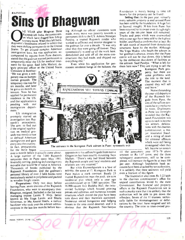 At first, many Oregonians believed the Rajneeshees were merely eccentric and treated them with a basic level of tolerance. As the ashram grew, public opinion turned. Rajneeshpuram looked to many like a dangerous cult that was thumbing its nose at the rest of the state. Government officials, including Governor Atiyeh, grew increasingly concerned about the situation and began investigating the Rajneesh. The publications and reports on this page demonstrate some of the research that the governor's office gathered on Bhagwan Shree Rajneesh and his followers.