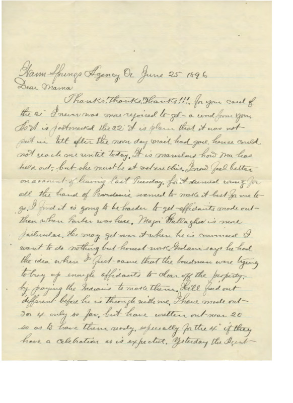 Letter from Cyrus Walker to his wife on a meeting between the new Indian Agent and the Native Americans of Warm Springs