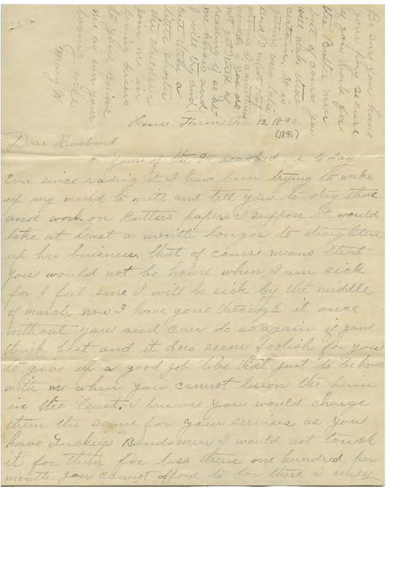 Letter from Mary Walker to her husband, Cyrus Walker, giving advice and making plans for the birth of their third child