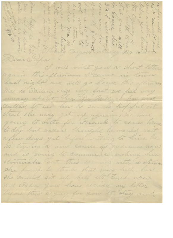 Letter from Mary Walker to her husband, Cyrus Walker, with worries about her mother's health and being alone during the end of her pregnancy