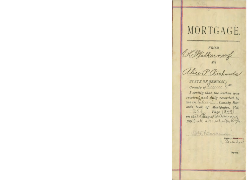 Mortgage for the sale of Mary Wheeler Walker's property to Alice P. Richards