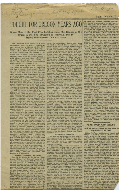 'Fought For Oregon Years Ago' news article from The Oregonian on Oregon veterans including Cyrus Walker
