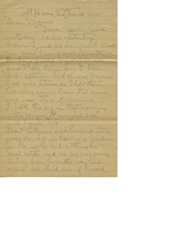 Letter from Cyrus Walker to his wife on a conflict with a neighbor