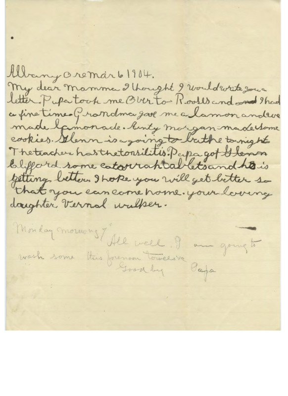 Letter from Vernal Walker to her mother on a visit with her grandmother