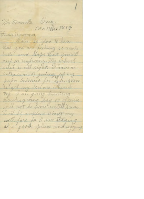 Set of letters from Clifford Walker to his mother, his sister, and his brother while at Linfield College
