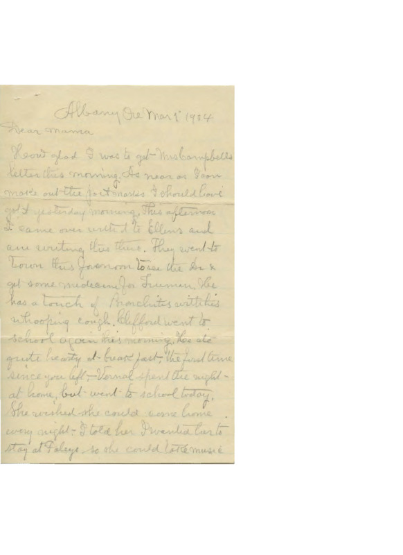 Letter from Cyrus Walker to his wife on her ongoing recovery from surgery and discussing their children