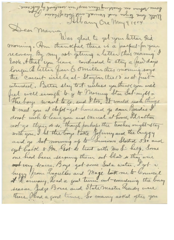 Letter from Cyrus Walker to his wife detailing the family's plans for the next few days