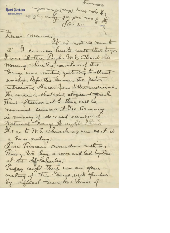 Letter from Cyrus Walker to his wife detailing his trip to Portland, Oregon