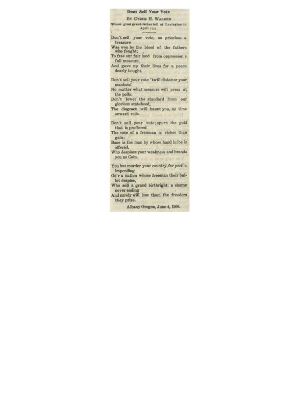 'Don't Sell Your Vote' poem by Cyrus Walker