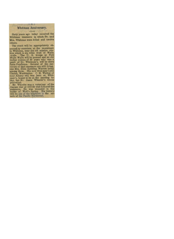 Cyrus Walker was the oldest son of the early Oregon Territory missionaries Elkanah and Mary Richardson Walker. He grew up at Tshimakain in the 1830s-40s, where he learned the native Spokane language. After joining the U.S. army during the Civil War and then attempting to make a living as a farmer, he became a teacher at the Warm Springs Indian Agency. These letters, documents and clippings shed light on his experiences as a missionary, a soldier, a pioneer and a teacher at Warm Springs. This collection was donated to Pacific University by Betty Thorne, a descendant of the Walkers.