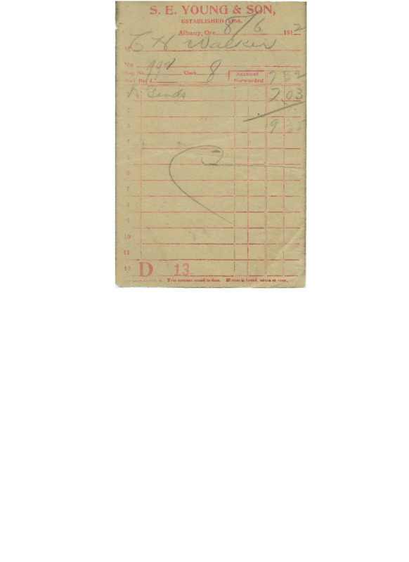 Receipt given to Cyrus Walker by S. E. Young & Son